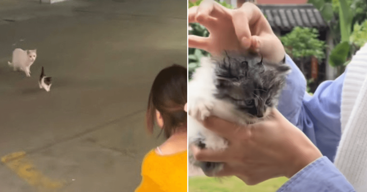 She was handing over her kitten to someone she had learned to trust, hoping it meant a better future for her child.
