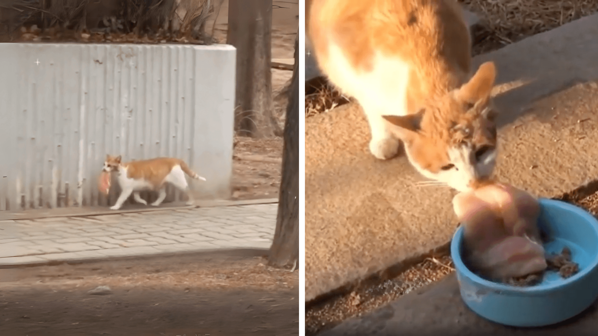 At first, it seemed like a case of theft. The cat’s fur was ragged, bearing the marks of a life lived on the streets, and her mission appeared to be clear: steal chicken.
