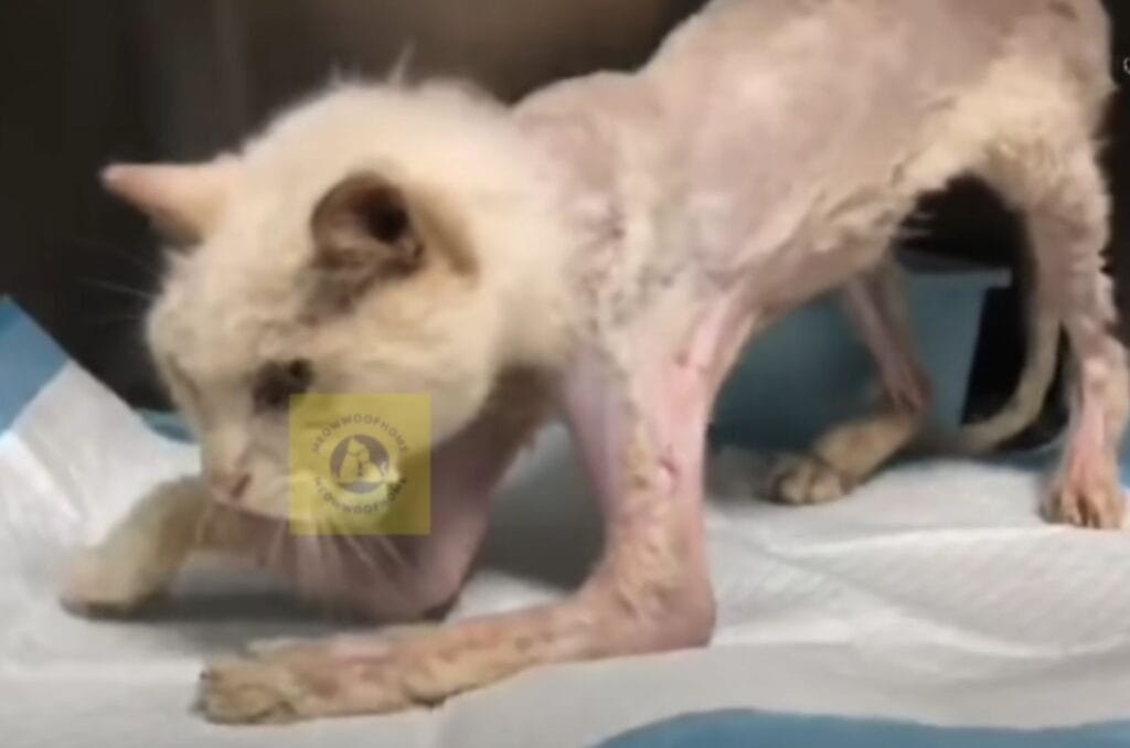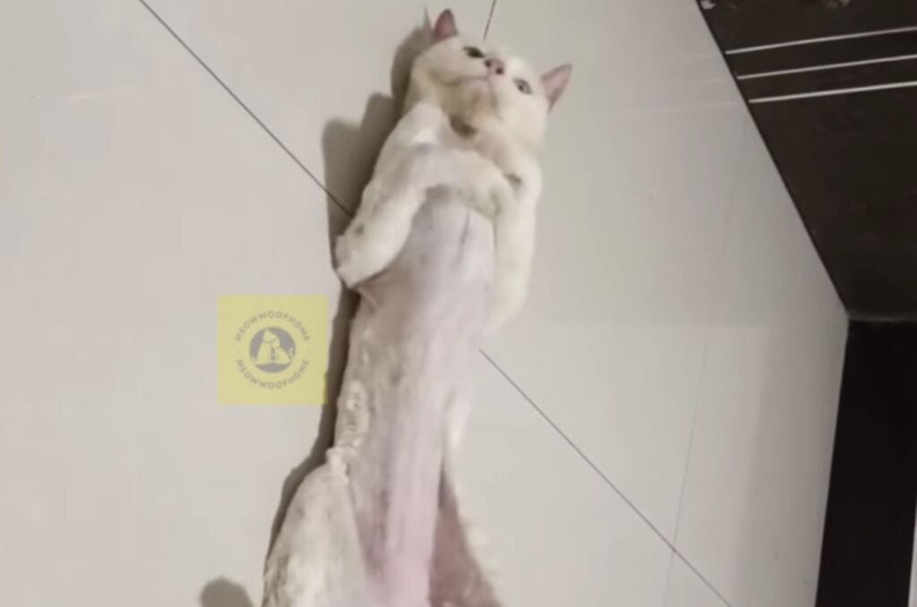 When rescuers first spotted the white cat curled up near a quiet street corner, something about the way he cried out stopped them in their tracks.