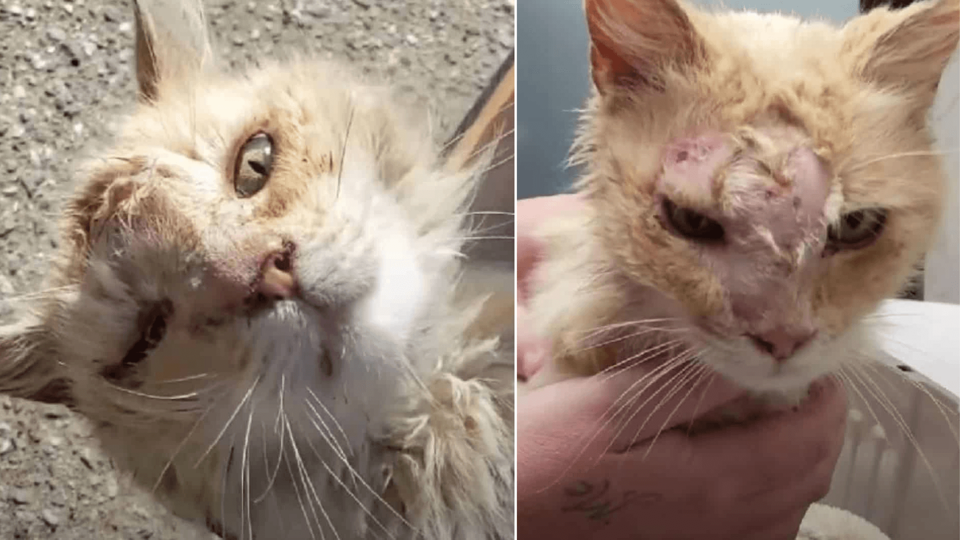 Left behind, after his owners moved away, the cat had been struggling on his own.