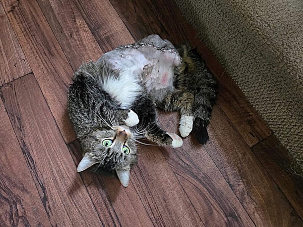 And if you’re wondering what she looks like post-surgery? She’s still just as striking, still that same sweet tabby, now just with one less complication.