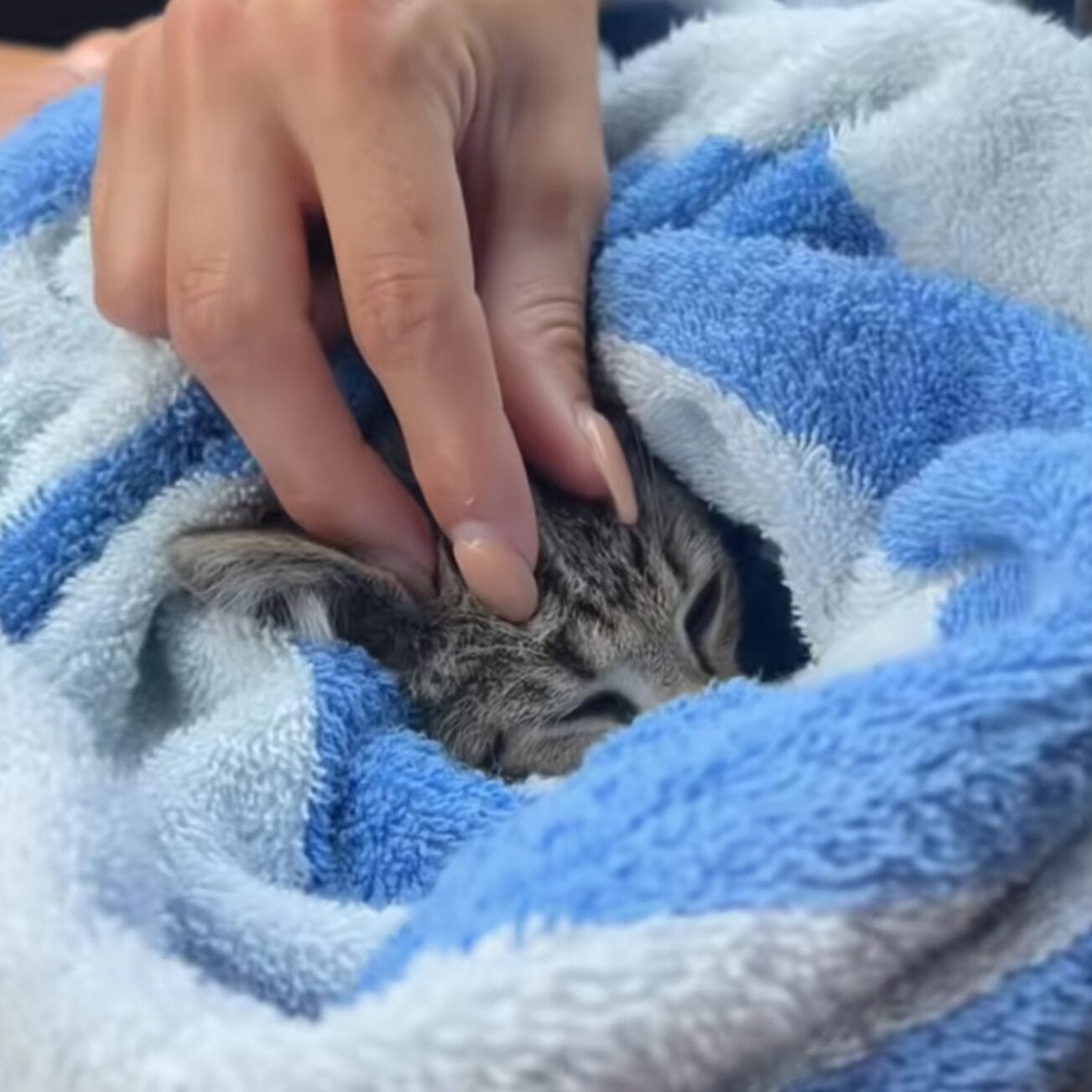 Kailyn grabbed their own cat’s carrier and placed it nearby, hoping the familiar smell would comfort the scared little creature.