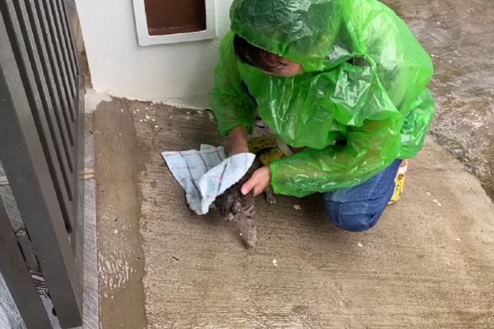 A woman inside a nearby building caught the faint meows beneath the roar of the rain.