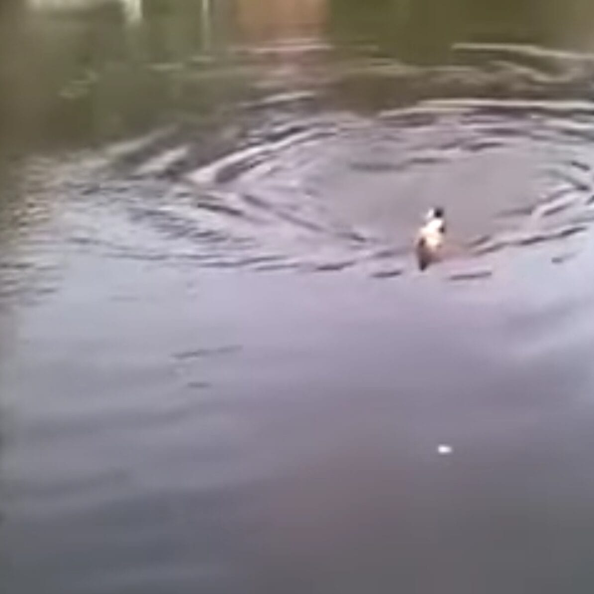A poor cat was fighting for its life in the water, struggling to stay afloat.