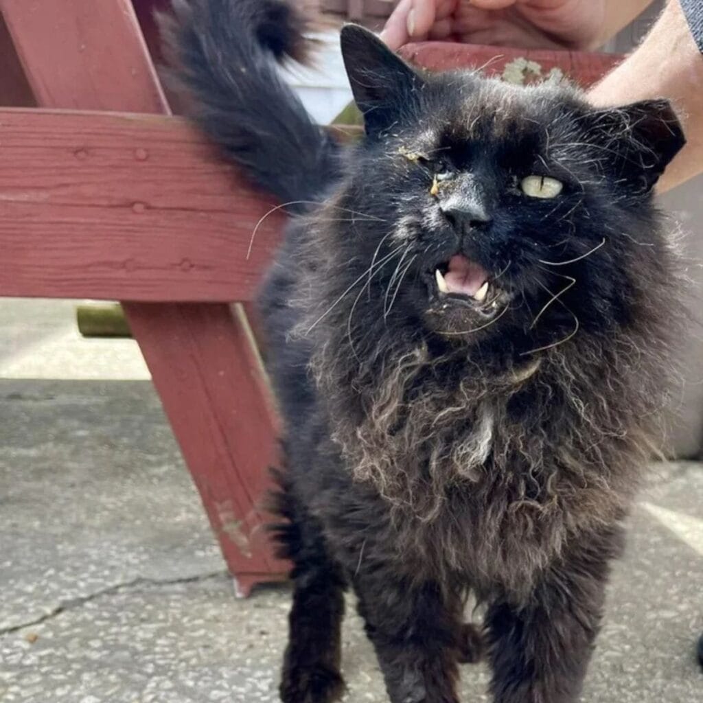 His fur became tangled and matted, and an eye infection left him looking sickly and weak.