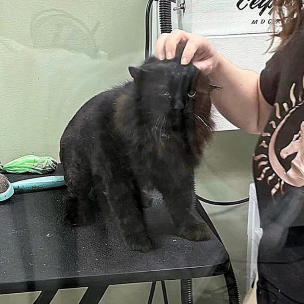 His matted fur was carefully shaved, and he was given treatment for his eye infection.