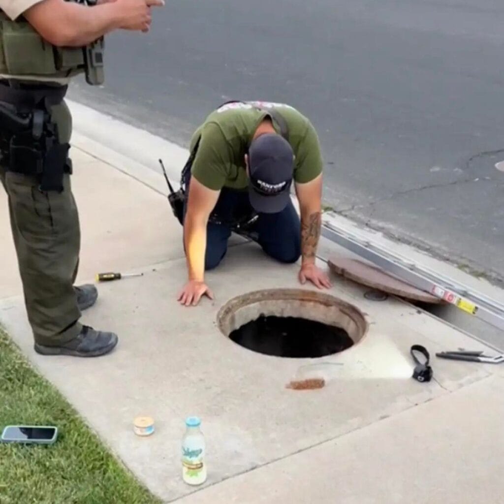 Together, they called the fire department. Within minutes, a crew of firefighters arrived, ready to take on a very unusual rescue.