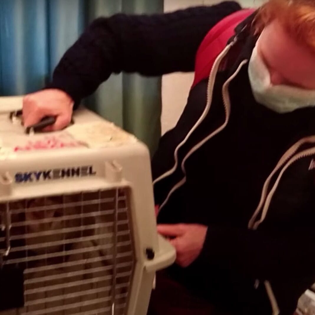 The ginger cat stayed in his carrier, too afraid to move. Tiffany sat nearby, speaking softly to them until well past 2 a.m.