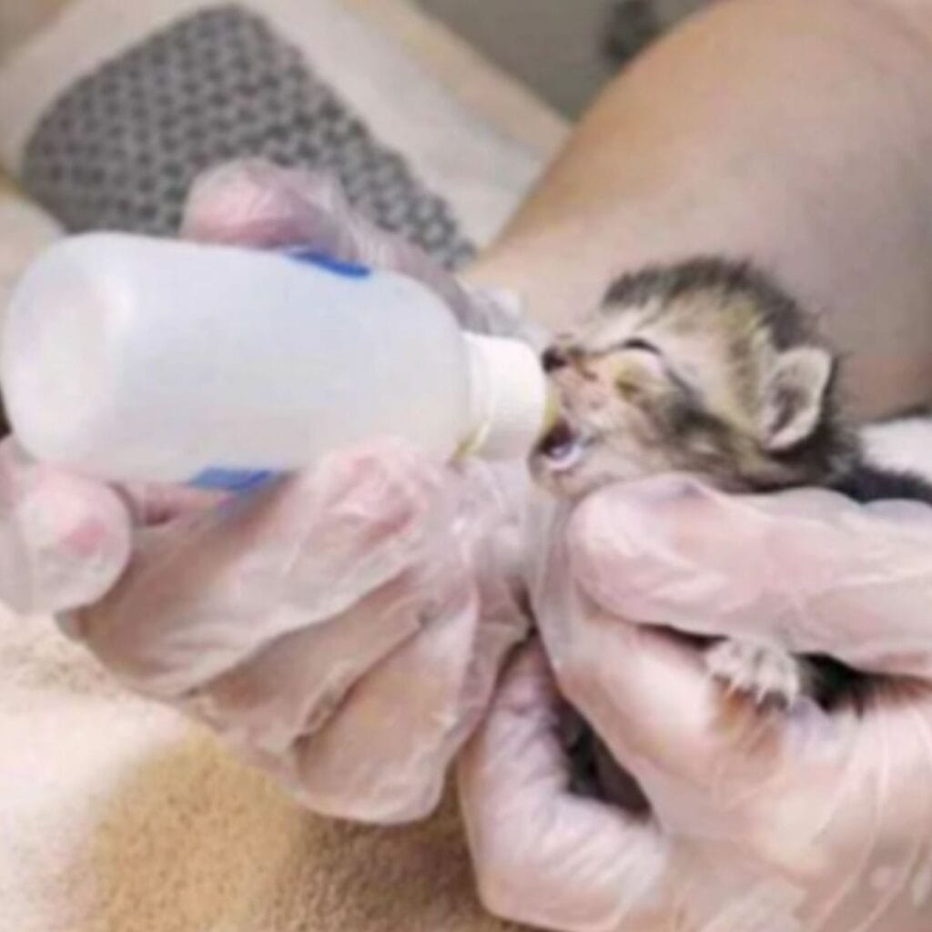 The kittens were in terrible condition, dehydrated, starving, and clearly exhausted from crying for so long.