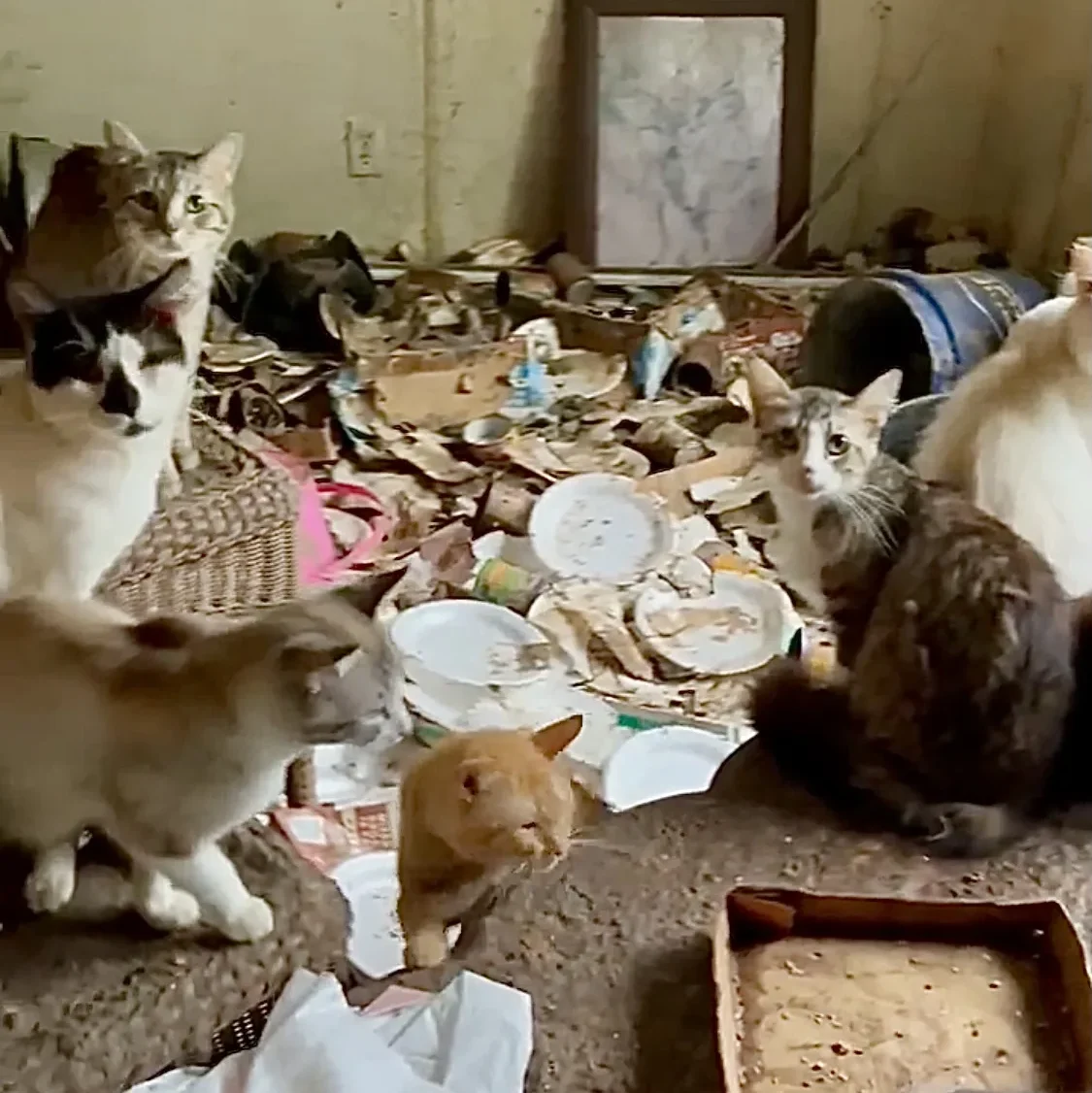 The videos and photos left little room for doubt. Cats could be seen huddled in corners, their fur missing in patches, their eyes swollen shut from infection.