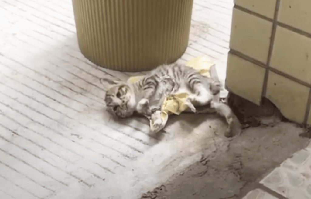 At first, they assumed it was just another stray wandering around. But a closer look revealed the truth: the kitten was struggling, its delicate body partially stuck to a glue trap.
