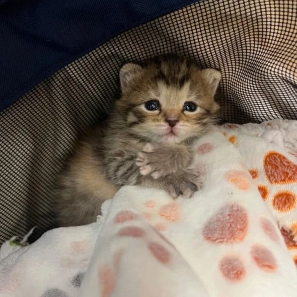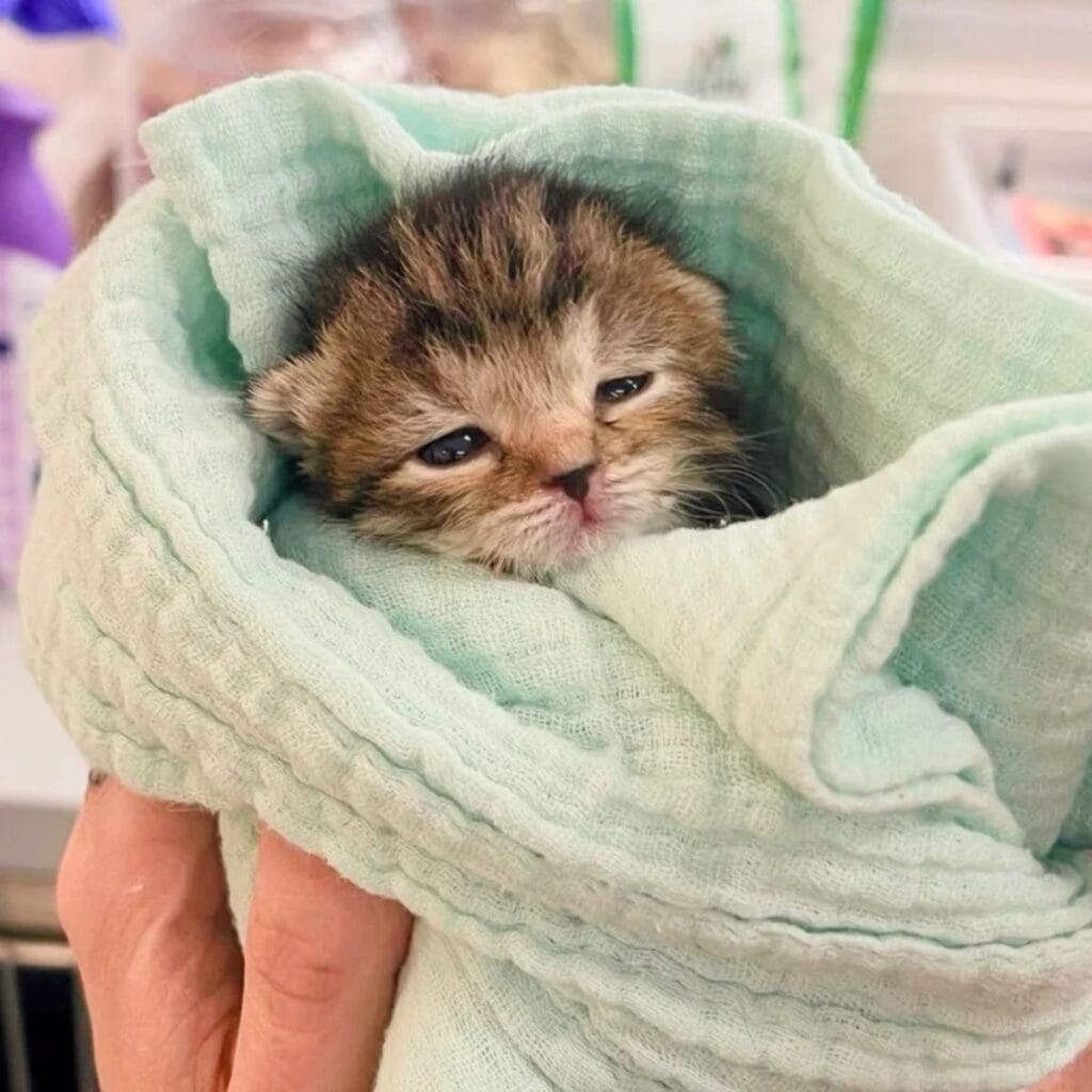 The team taking care of her says she’s already showing signs of personality: curious, quiet, and surprisingly resilient for such a young kitten.