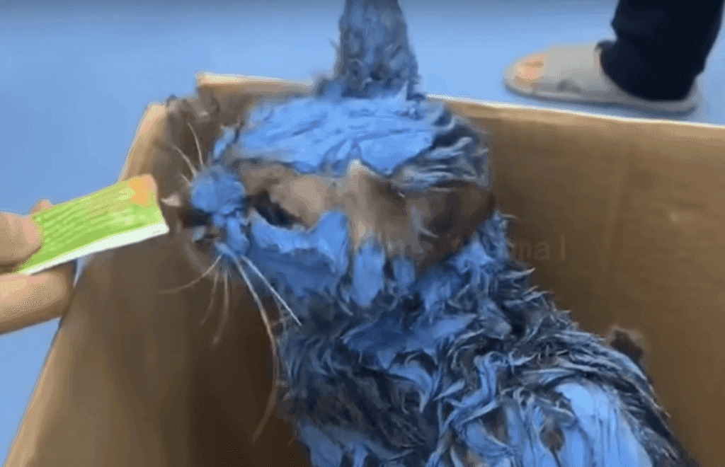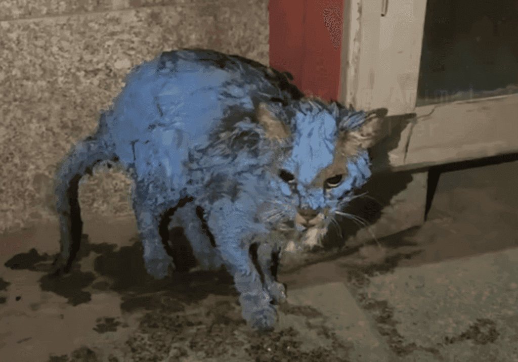 They attempted to remove the paint, but it clung to the cat’s body, tearing at its already fragile skin.