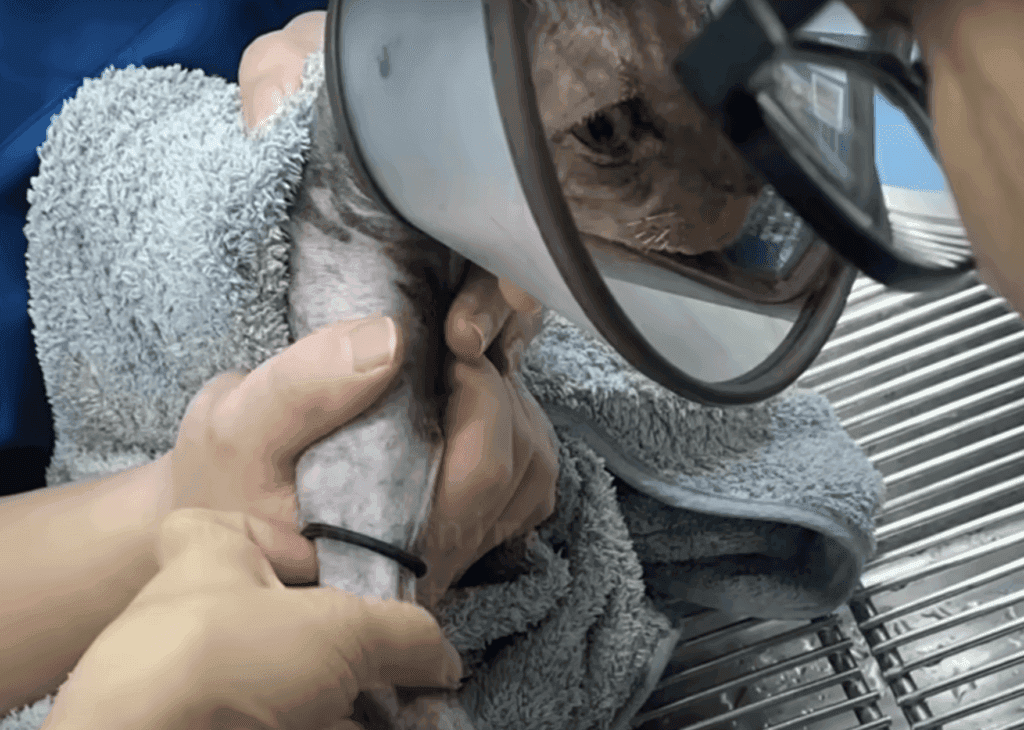 It received IV fluids, medication, and plenty of love from its caretakers. It was a long and painful process, but the cat showed incredible strength.