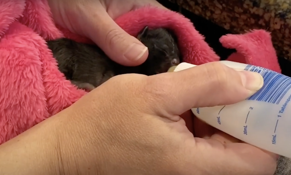 Digging through their supplies, they found some kitten formula and gently tried to coax a few drops into the trembling little body.