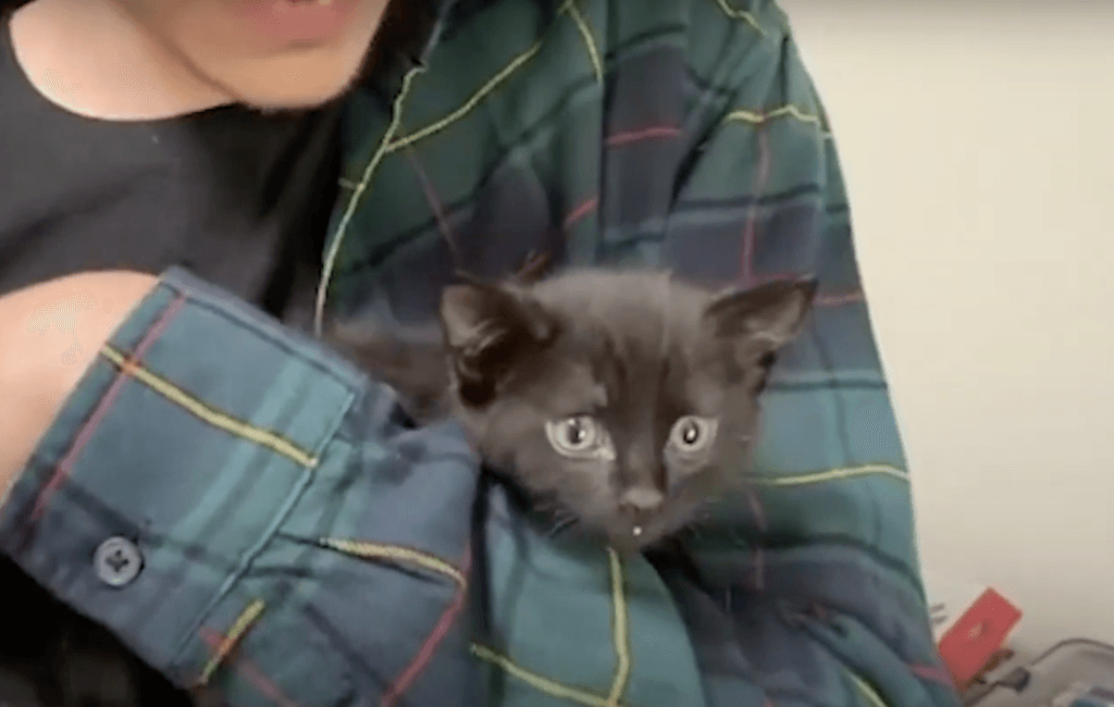 The kitten’s tiny form shivered with every movement, and its eyes remained so tightly shut that it was hard to tell if it even sensed their kindness.