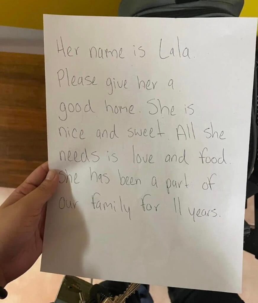 Someone wanted the shelter to know Lala had been loved for most of her life.
