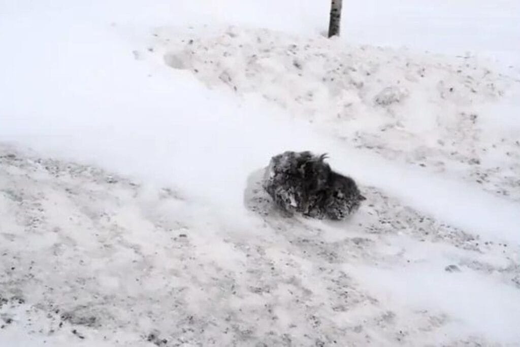 It happened on a freezing, snowy day when a driver named Slava noticed something unusual on the roadside.