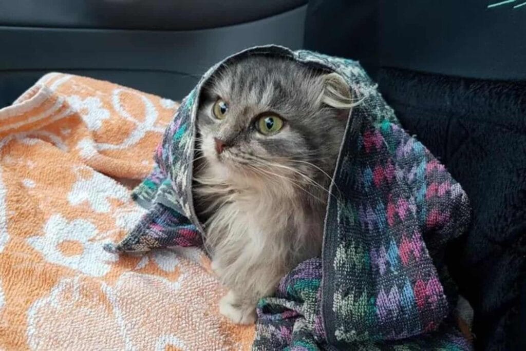The kitten didn’t resist. She simply let herself be bundled up, too weak to fight, as if she somehow understood that this human had come to save her.