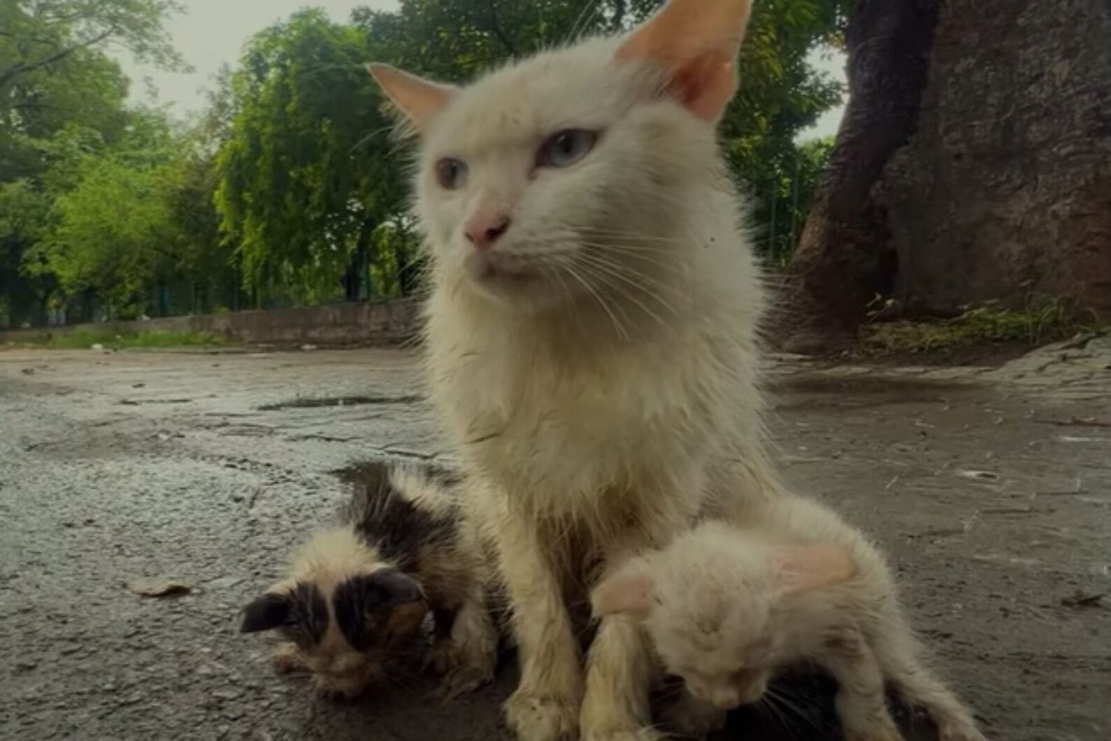 Man Spotted A Starving Cat Family In The Rain—Two Hours Later He Found Something That Left Him Completely Broken