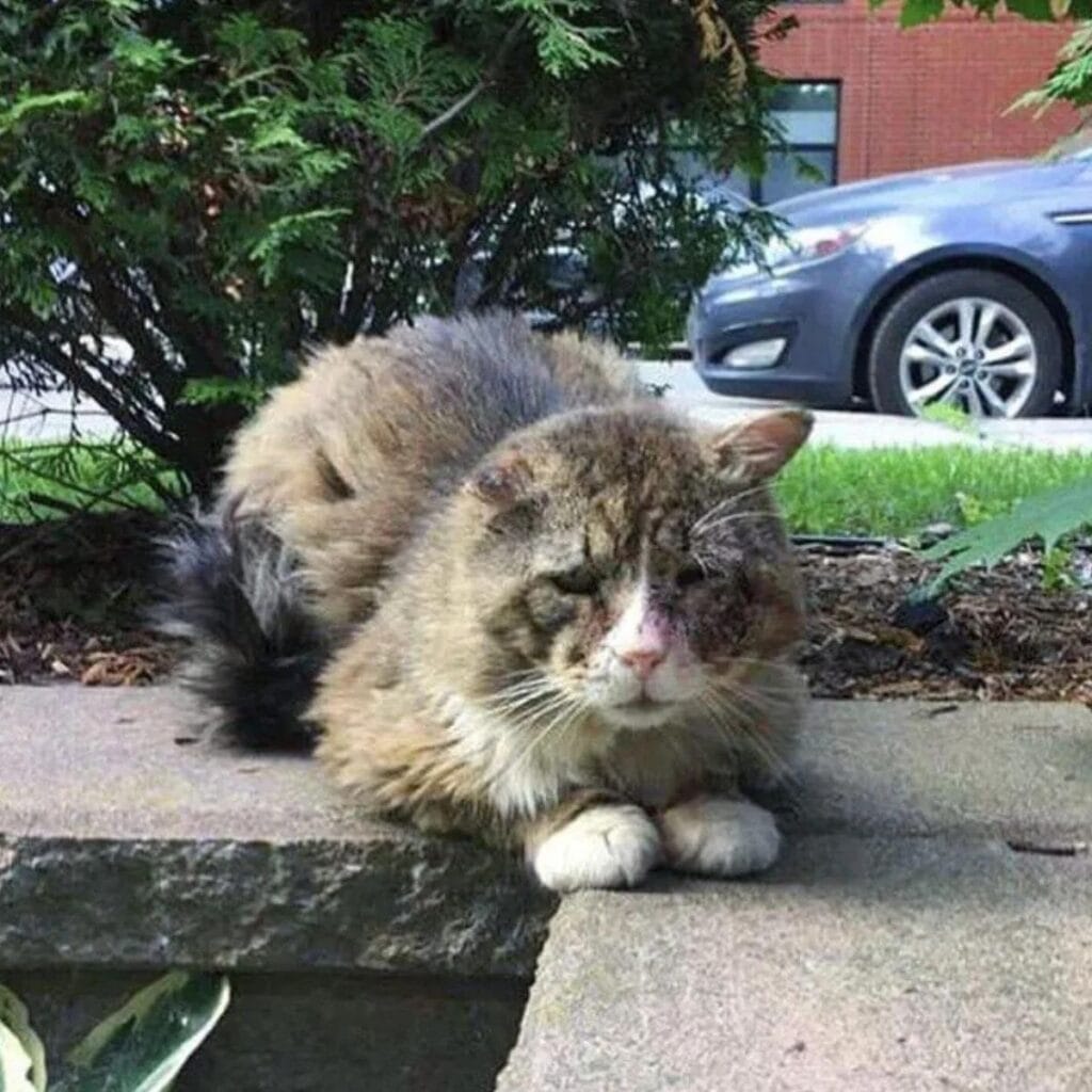 That was the case with one particular cat whose appearance told the story of just how harsh life had been.