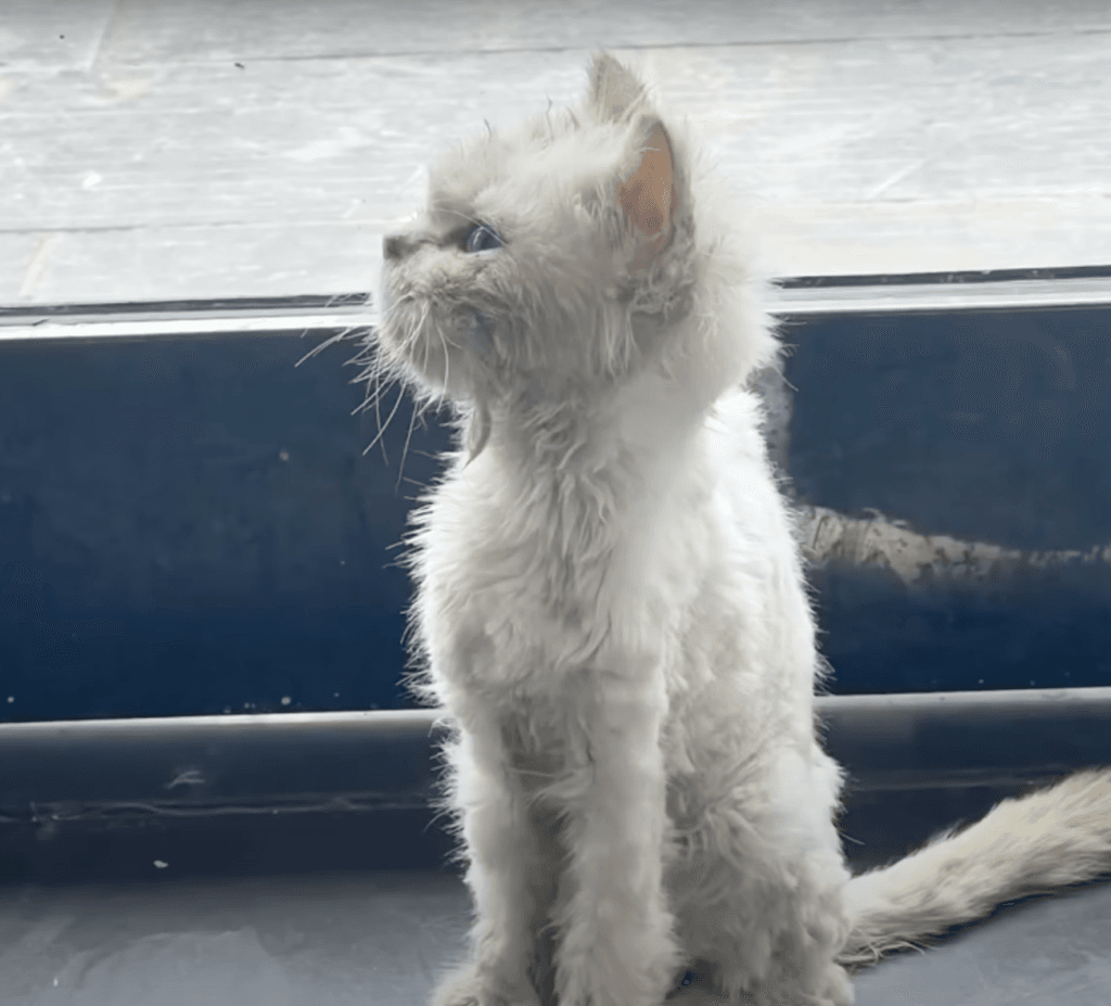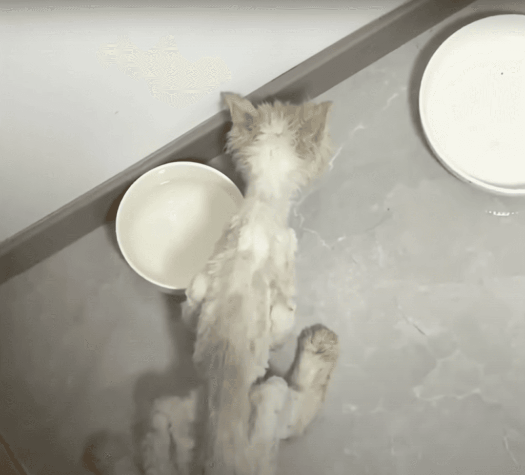 The kitten was shockingly thin, “as skinny as a chopstick,” and looked like she hadn’t eaten in days. Surprisingly, when the woman approached, the kitten didn’t resist.