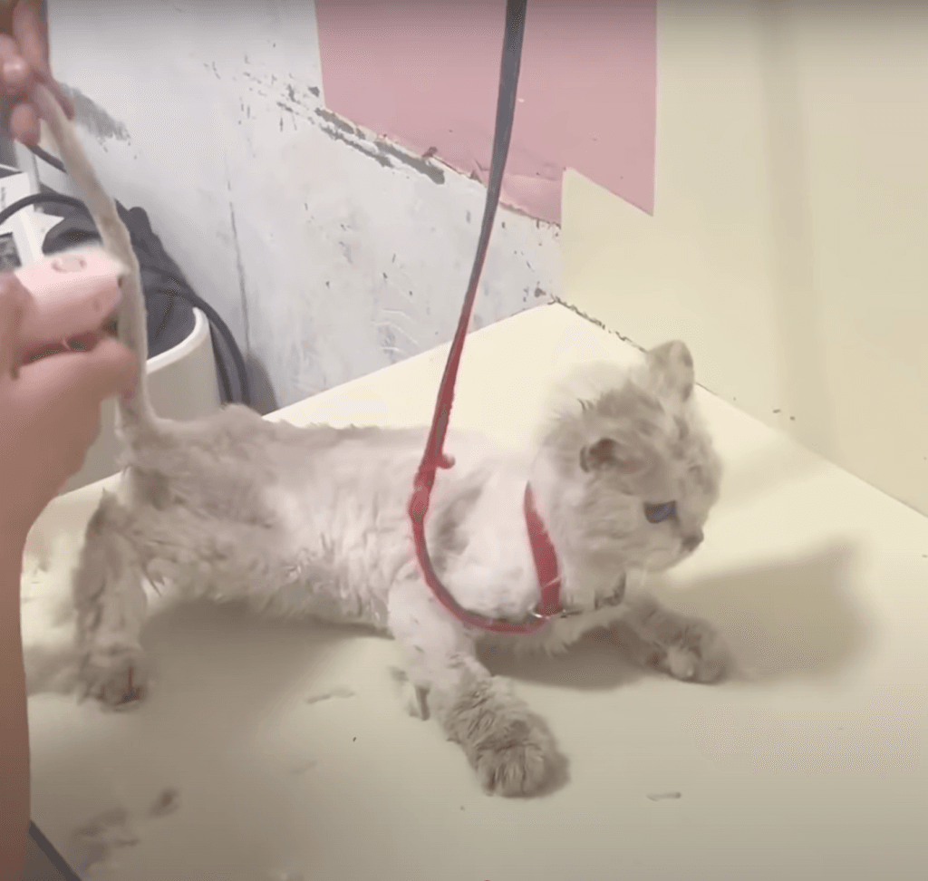 Even with her traumatic past, Xuebao showed remarkable resilience. She allowed the vet to trim her nails and clean her ears, sitting quietly as if she knew it was for her benefit.