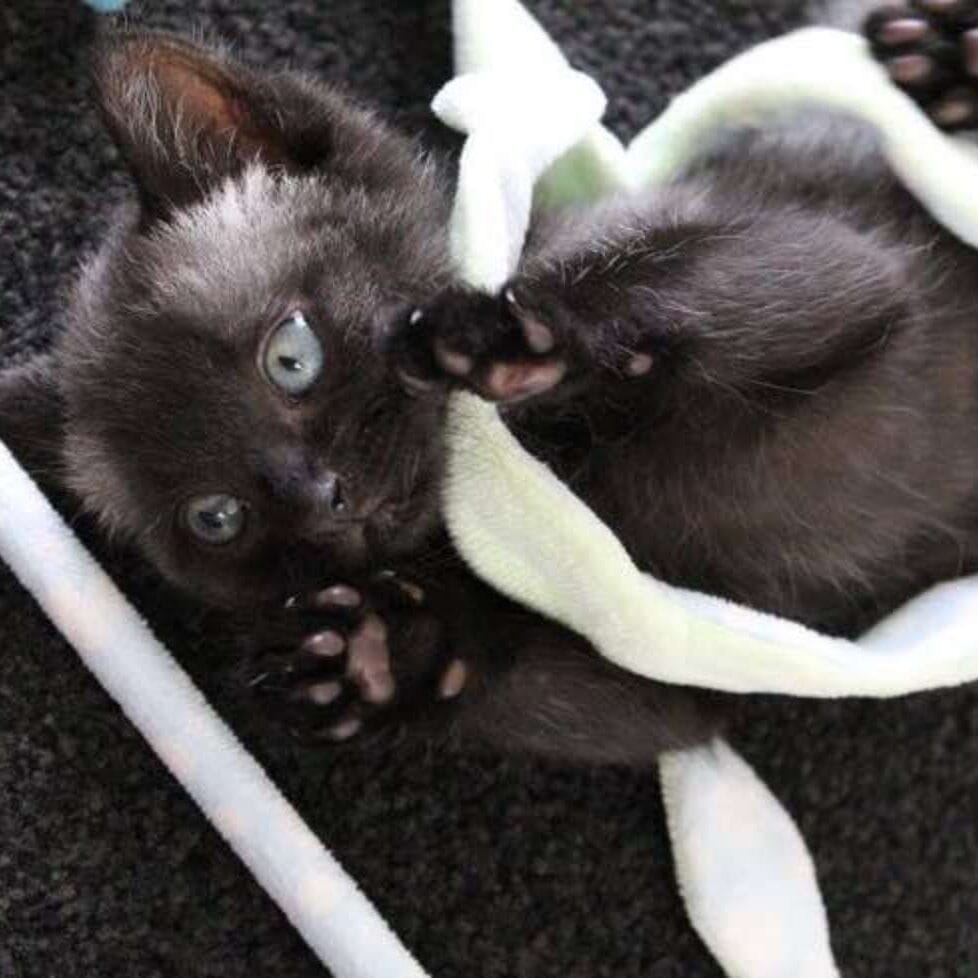 By the time Bruce was three months old, he looked like a completely different cat. His once pale fur had turned jet black, and his tiny frame had filled out with energy and confidence.