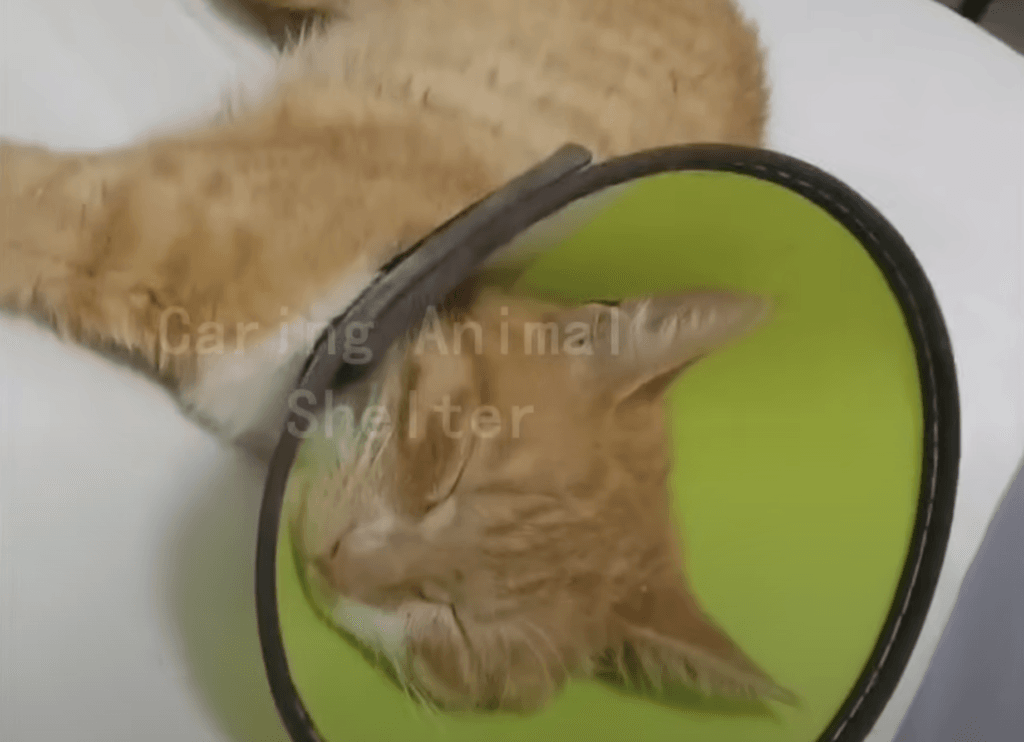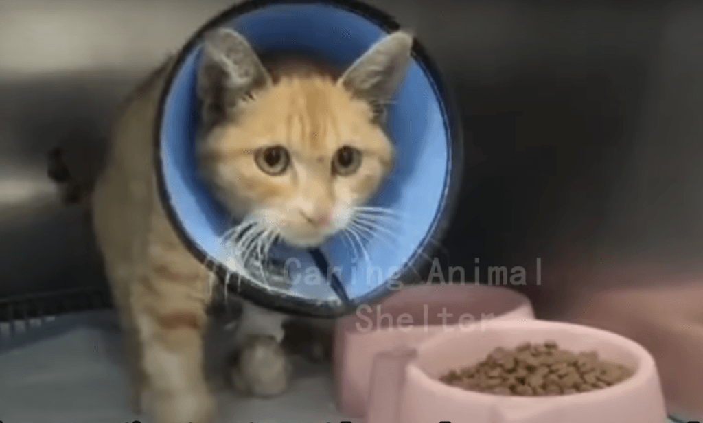 The cat is now recovering from surgery, slowly adjusting to its new life.