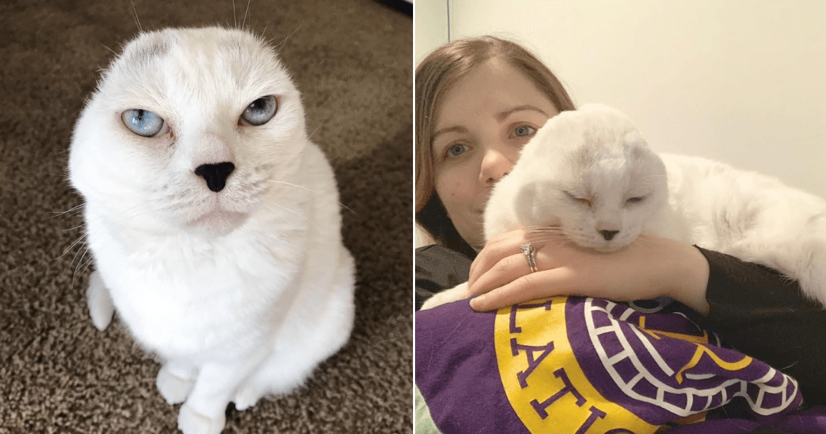 The pure white feline was missing both of his ears and didn’t seem to hear anything around him.