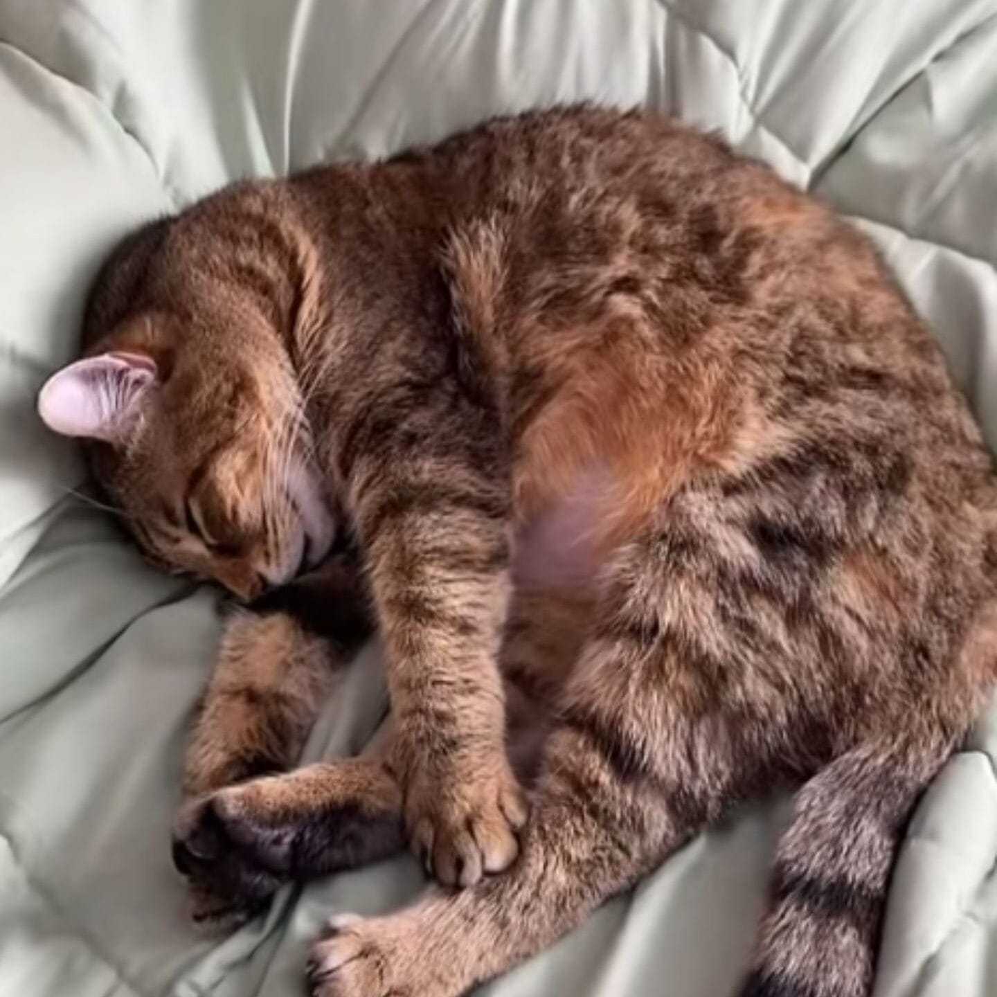 The same paws that once tapped desperately at the glass were now kneading into soft blankets in her forever home.
