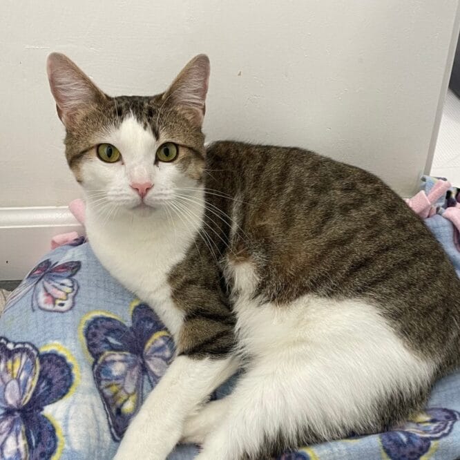 That’s when they met a small, gray-and-white tabby who would soon change everything.
