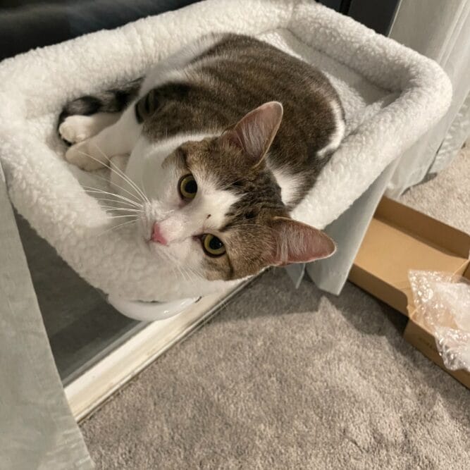 “Every night she jumps in our bed and snuggles up to us. It’s the sweetest thing.”