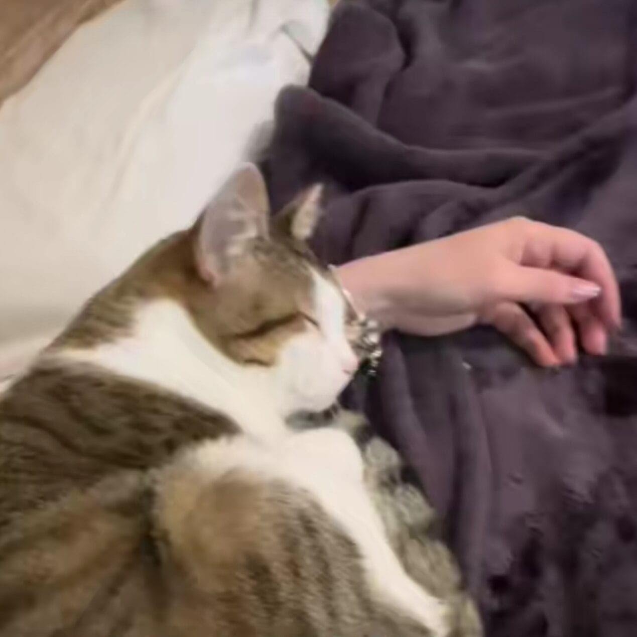 In the clip, Miss Honey can be seen gently rubbing her face against Allison, her purrs so loud they almost sound like a tiny motor.