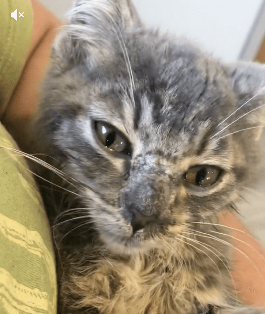 One viewer wrote that the kitten’s eyes showed he felt safe.