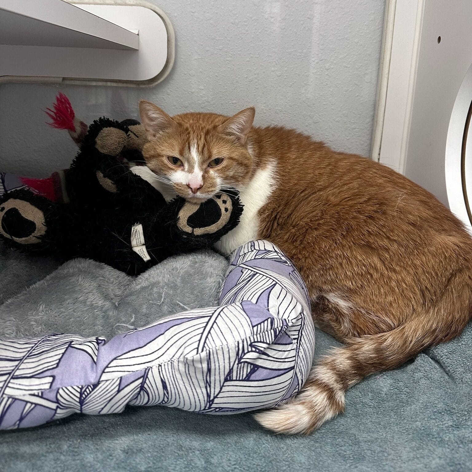 Many people said the image of the cat holding onto his plush toy brought tears to their eyes.