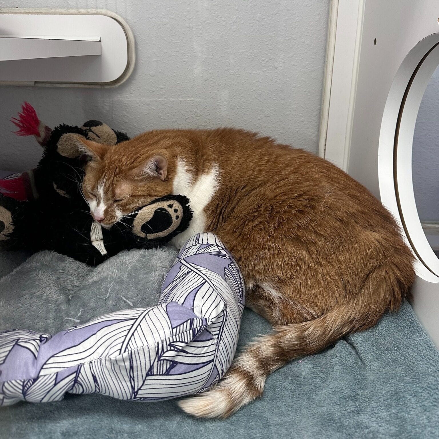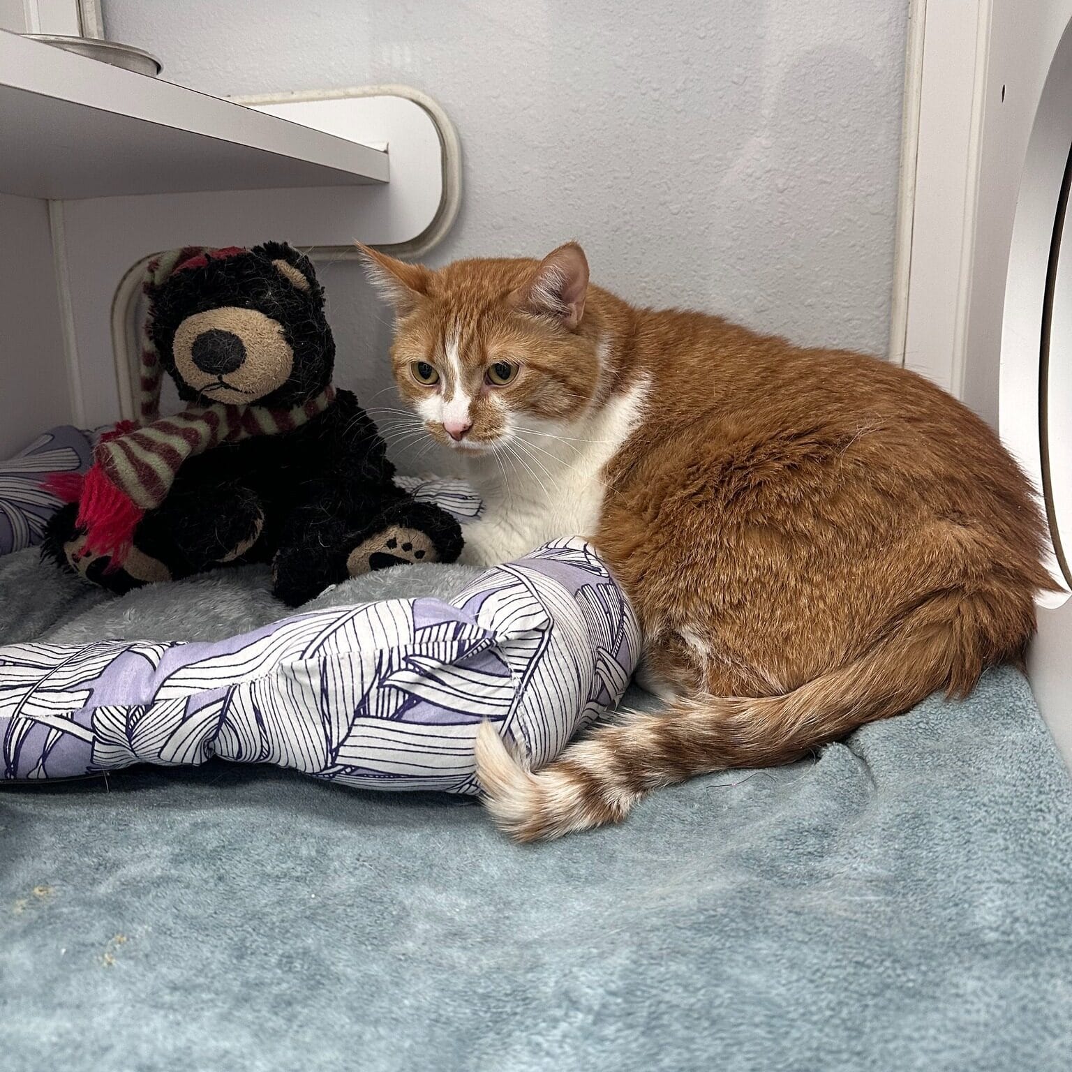 Zoey was placed in the shelter’s cattery, where he has his own room to relax while he settles into his new surroundings. Staff say he has been doing well overall.