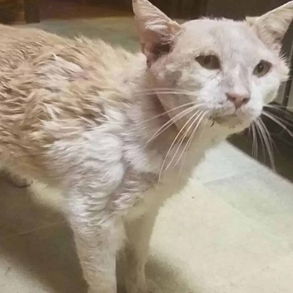 His fur was patchy. His face was swollen beyond recognition.