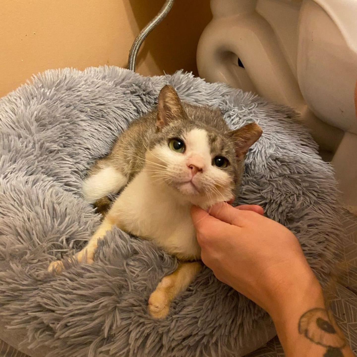 Thanks to Dominique’s determination, a poisoned and frightened stray now has the life every cat deserves.