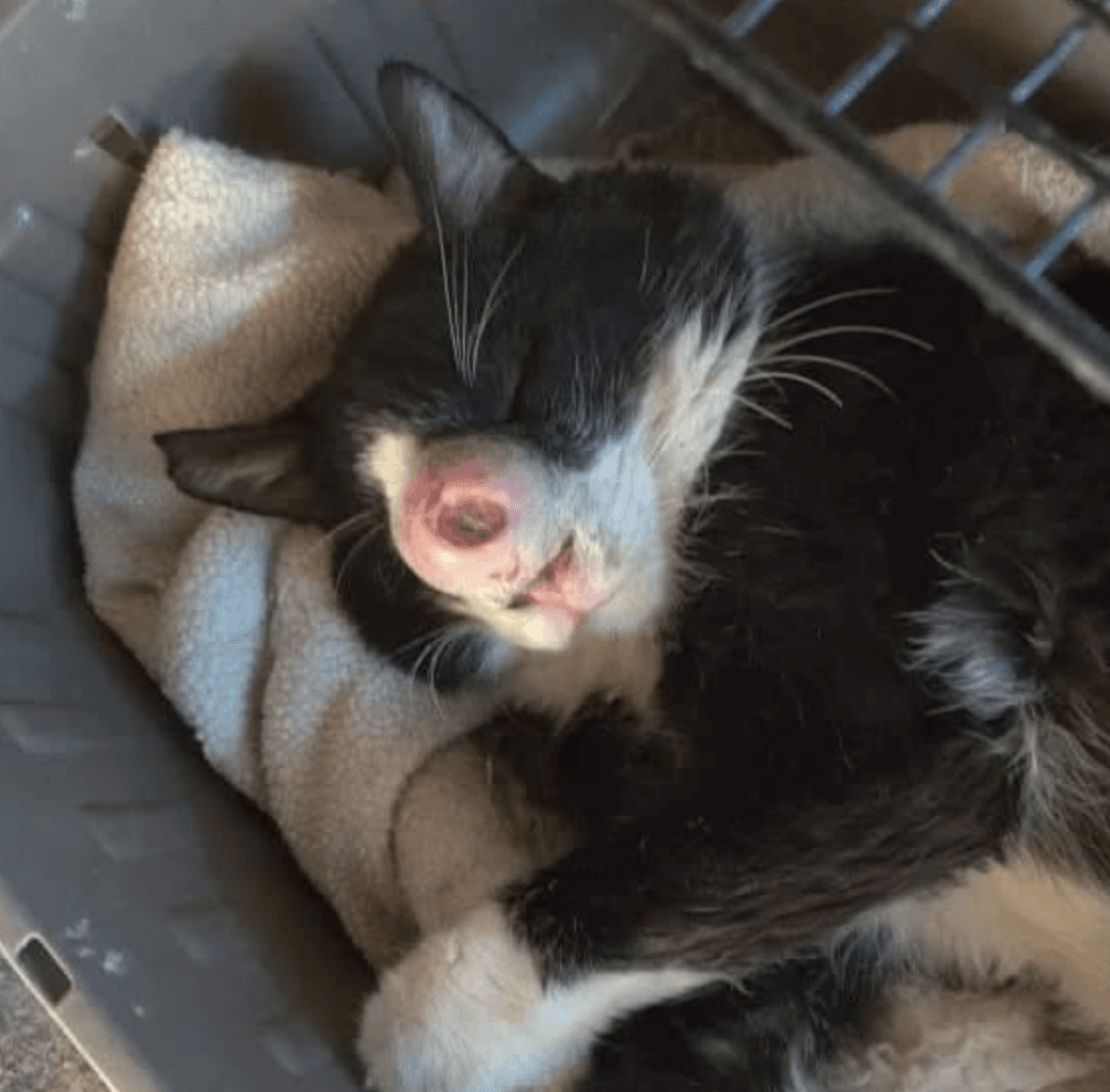 It was a devastating moment, one where it seemed that this little cat’s chance for a future had all but vanished.