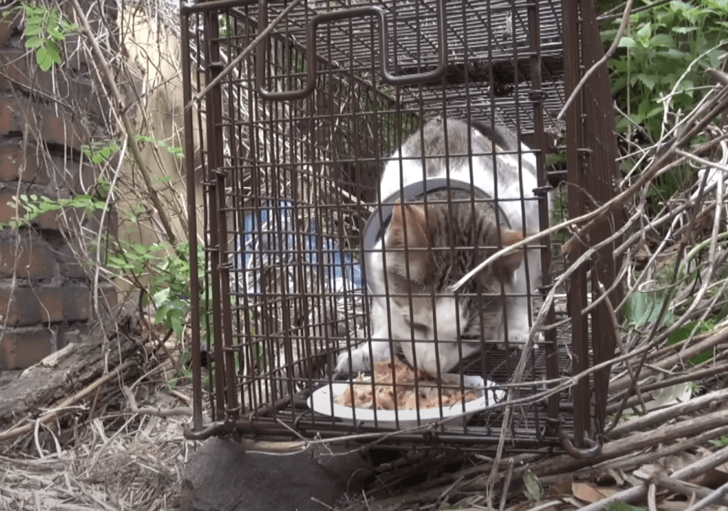 Inside the cage, panic set in as the kittens cried out from their hiding spots in the nearby bushes.