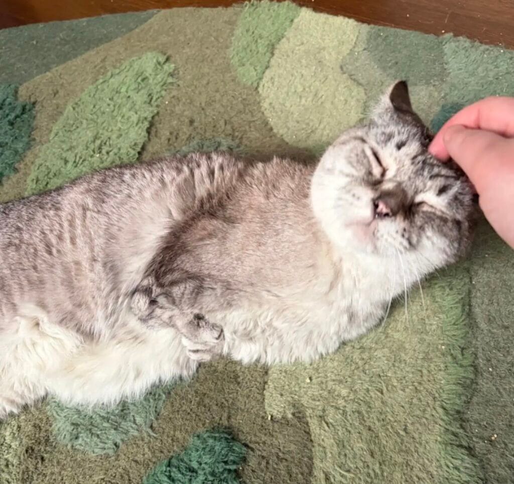 He especially loves ear scratches and gentle attention, leaning into affection whenever it is offered. Those small moments have become part of his everyday life now.