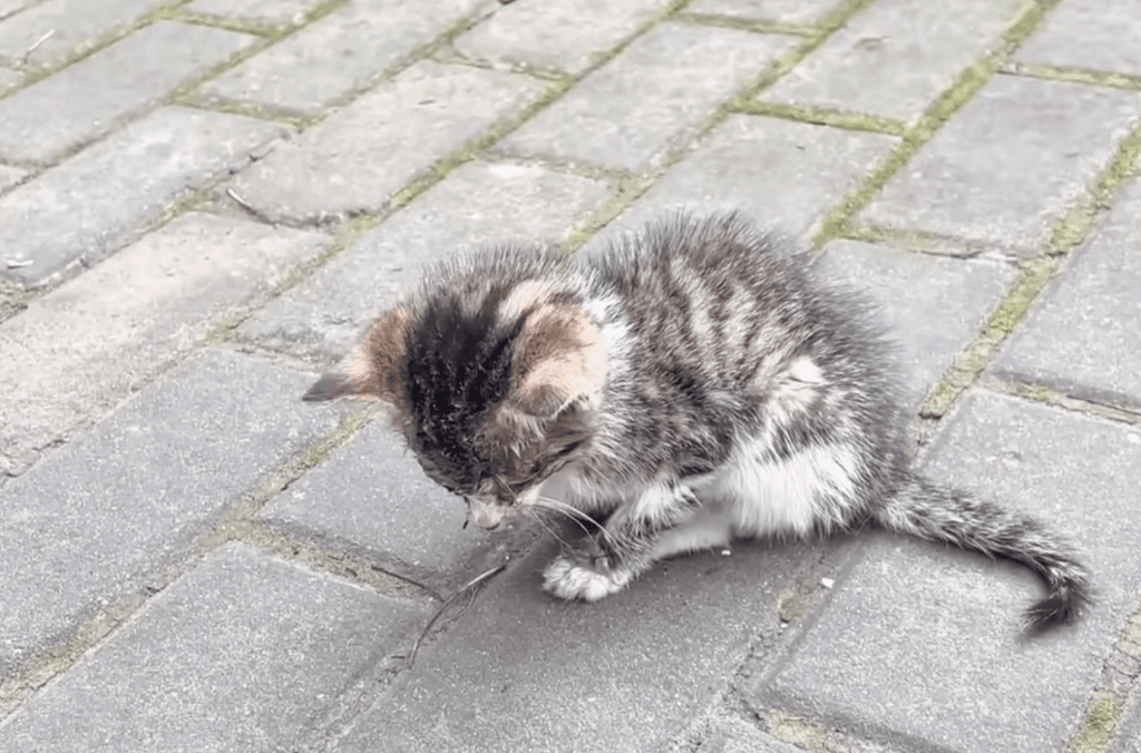 Its eyes were sealed shut, its body barely moving, and crowds of people were passing without a second glance.