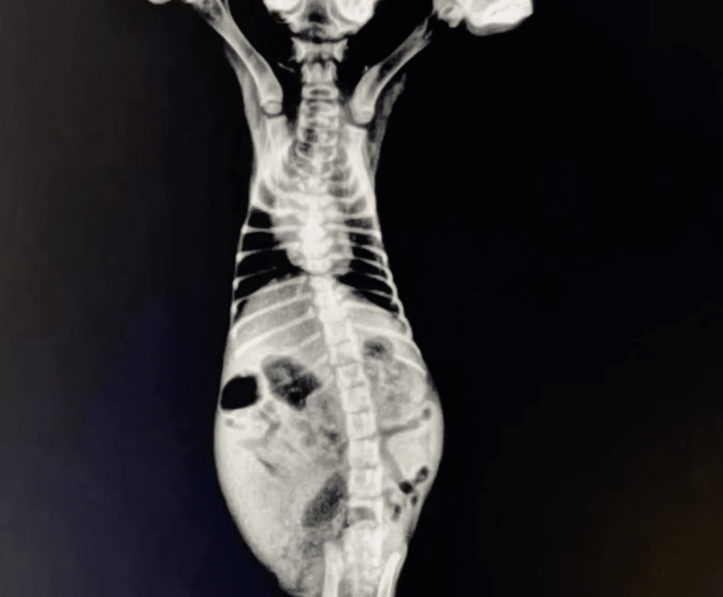 Gray soon noticed one of Jiu’s hind legs seemed weak while the other appeared swollen.