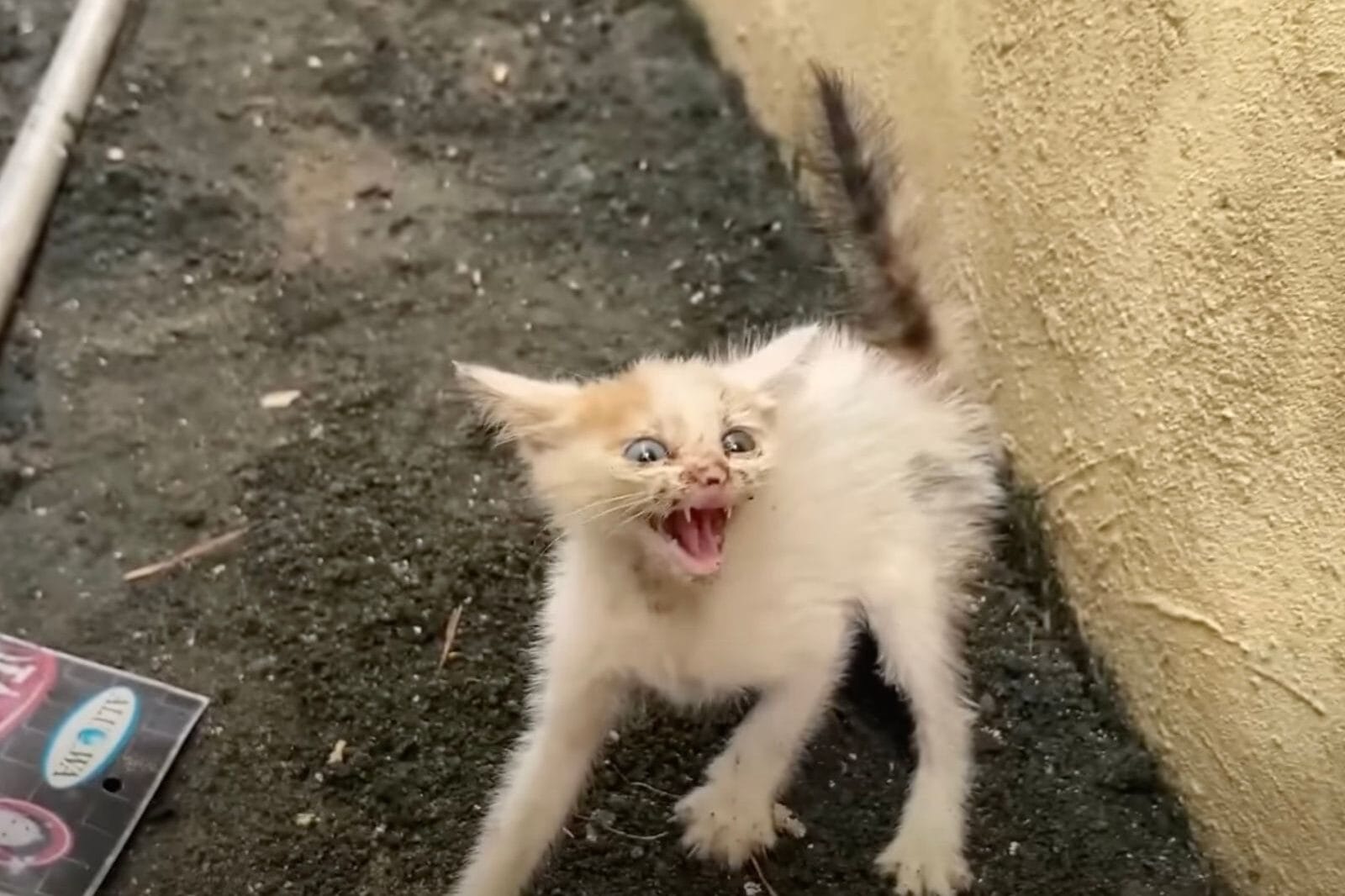 This kitten, despite being barely the size of a shoe, planted his feet and let out the loudest hiss his tiny lungs could manage.