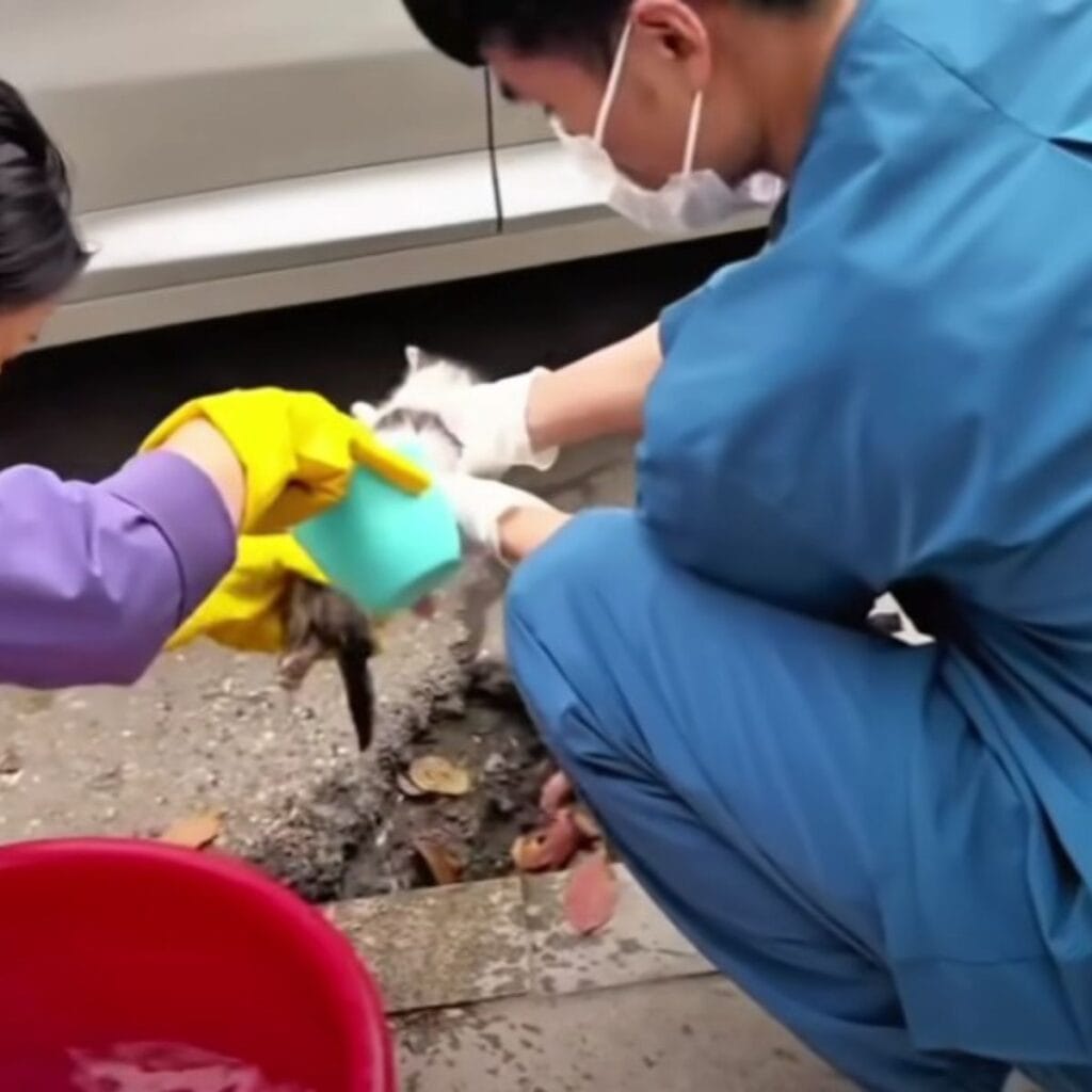 Once the dirt was gone, the vet carefully tended to his injuries.