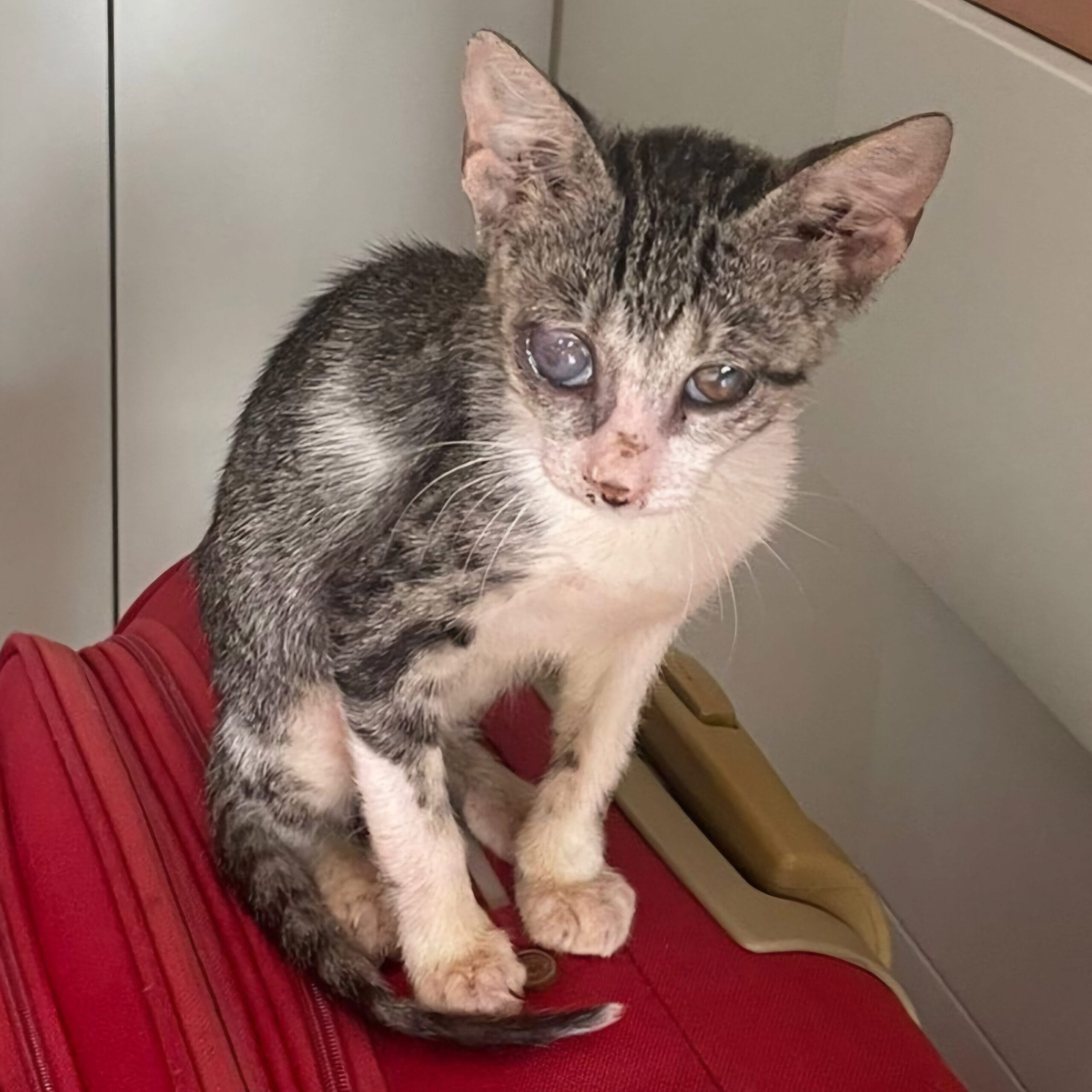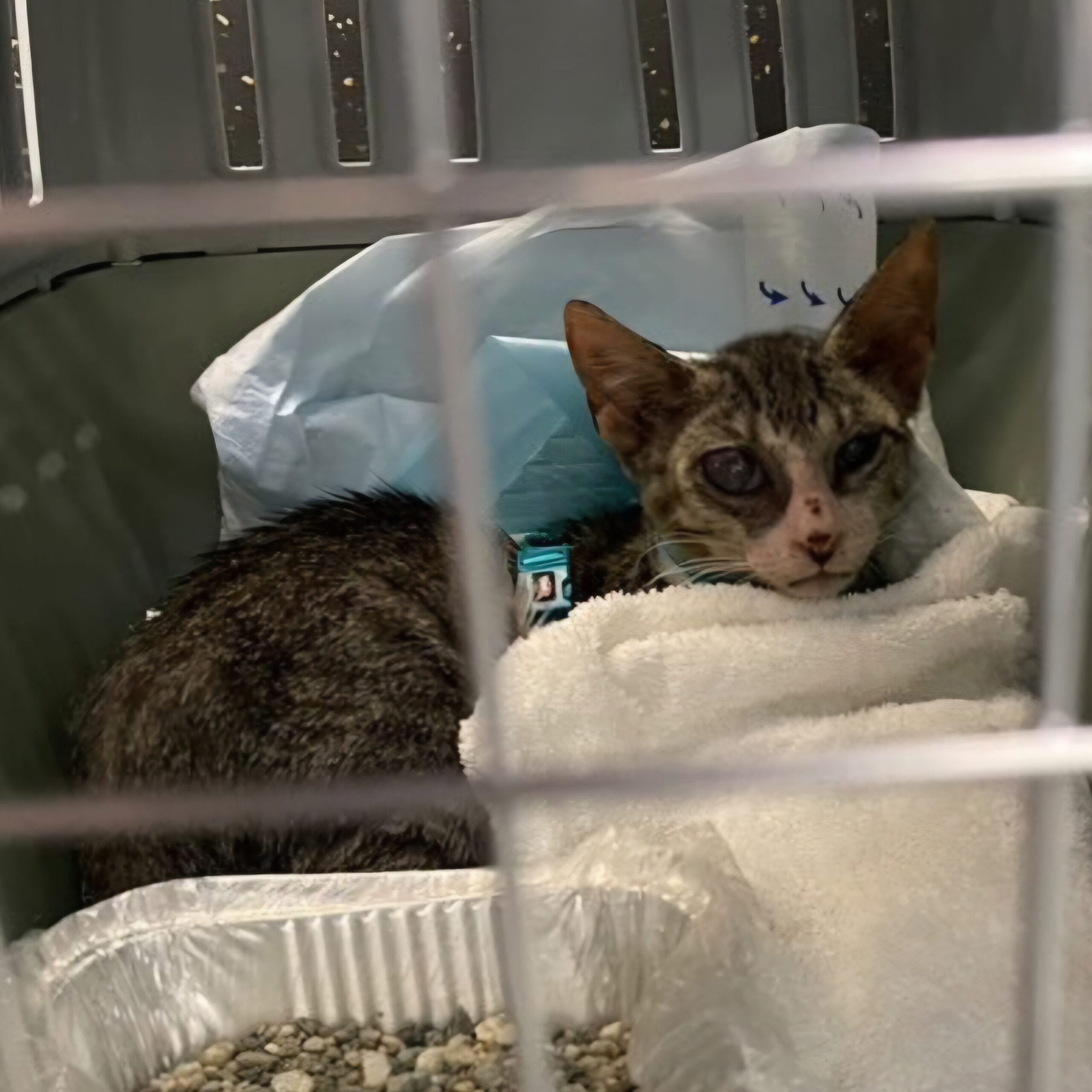 The cat, later named Molly, was skin and bones, with patches of fur missing and an eye so infected that it looked like it might not heal.