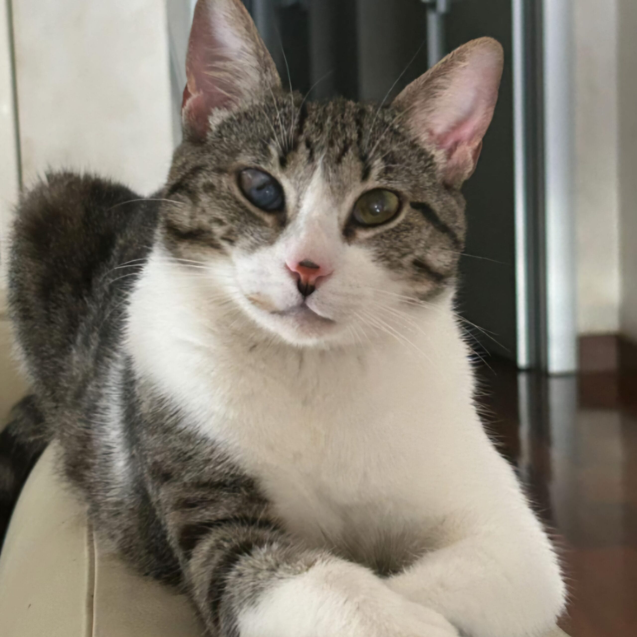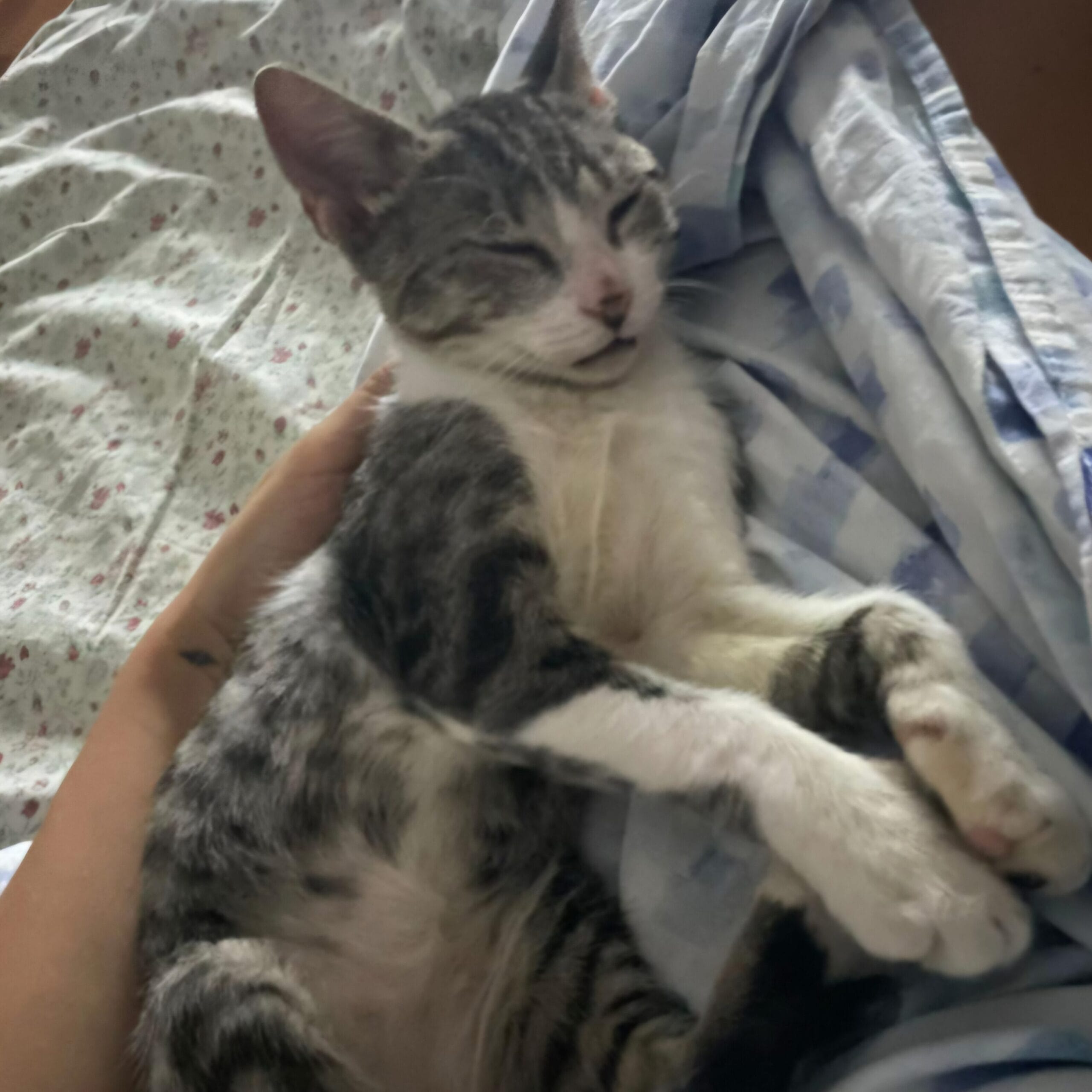 The once frail and terrified cat now has a home filled with space to roam, soft spots to nap, and endless cuddles from her new family.