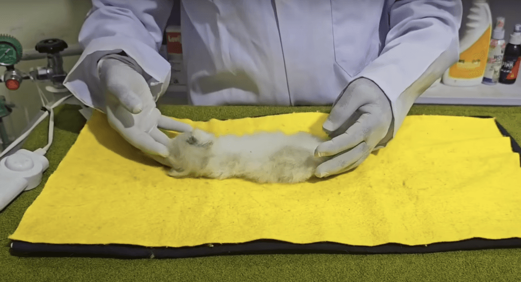 At the clinic, the vet quickly diagnosed the unconscious kitten with heat exhaustion and dehydration.