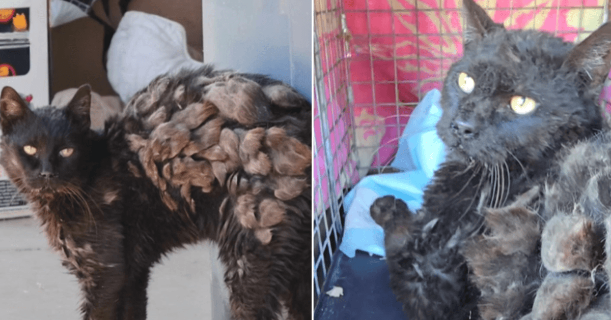 The cat’s fur was a complete mess thick clumps of knots covered most of his body, pulling tightly on his skin and making every movement look agonizing.